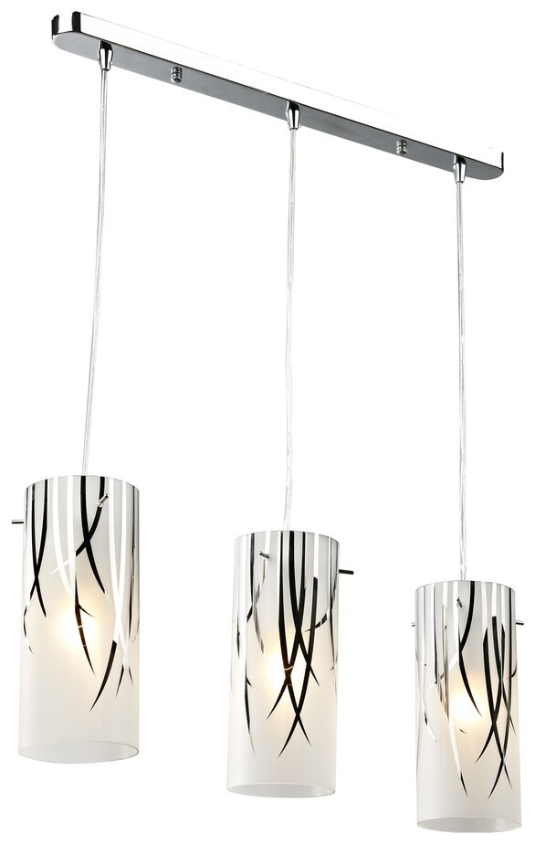 Подвесной светильник 776-106-03 итальянского производителя Velante из коллекции 776 исполнен в стиле модерн. Арматура светильника выполнена из металла цветов хром и черный. Поверхность арматуры глянцевая. Плафон изготовлен из стекла белого цвета, имеет цилиндрическую форму и матовую поверхность. Направлен вниз. Осветительный прибор рассчитан на освещение пространства площадью 9 кв. м. Тип цоколя используемых ламп E27. Производитель рекомендует использовать лампы мощностью не более 60 Вт. Суммарная мощность светильника составляет 180 Вт. Лампочки в комплект не входят. Защита от попадания влаги и пыли внутрь изделия не предусмотрена. Рекомендуем к применению в гостиной, кабинете, прихожей, спальне.