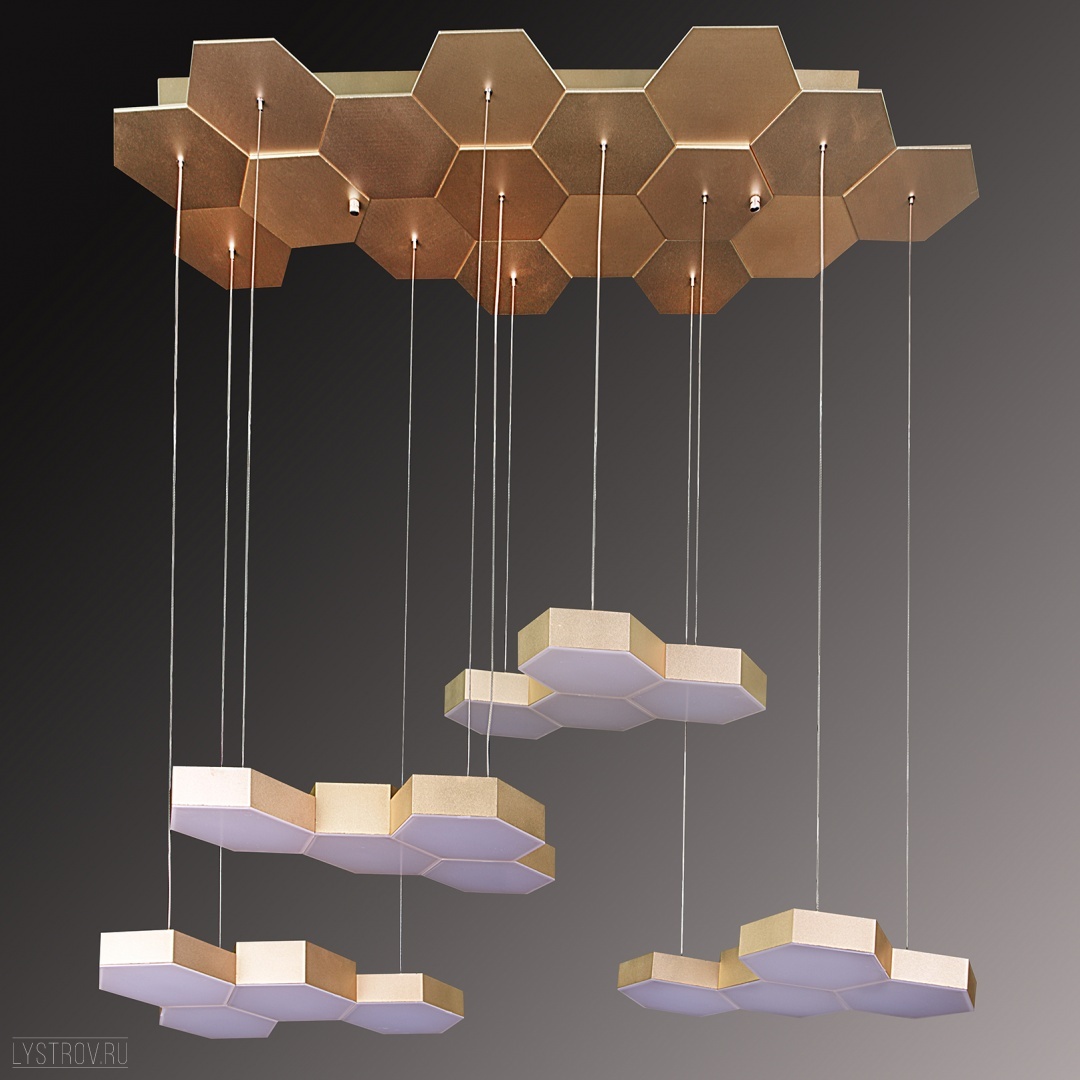 Светодиодный подвесной светильник 750263 итальянского производителя Lightstar из коллекции Favo выполнен в стиле модерн. Арматура светильника выполнена из металла золотого цвета. Поверхность арматуры глянцевая. Плафон изготовлен из пластика белого цвета, имеет сложную форму и матовую поверхность. Направлен вниз. Осветительный прибор рассчитан на освещение пространства площадью 4 кв. м. Тип цоколя используемых ламп LED (Встроенный светодиодный модуль). Производитель рекомендует использовать лампы мощностью не более 1 Вт. Суммарная мощность светильника составляет 80 Вт. Лампочки входят в комплект. Защита от попадания влаги и пыли внутрь изделия не предусмотрена. Рекомендуем к применению в гостиной, кабинете, прихожей, спальне.