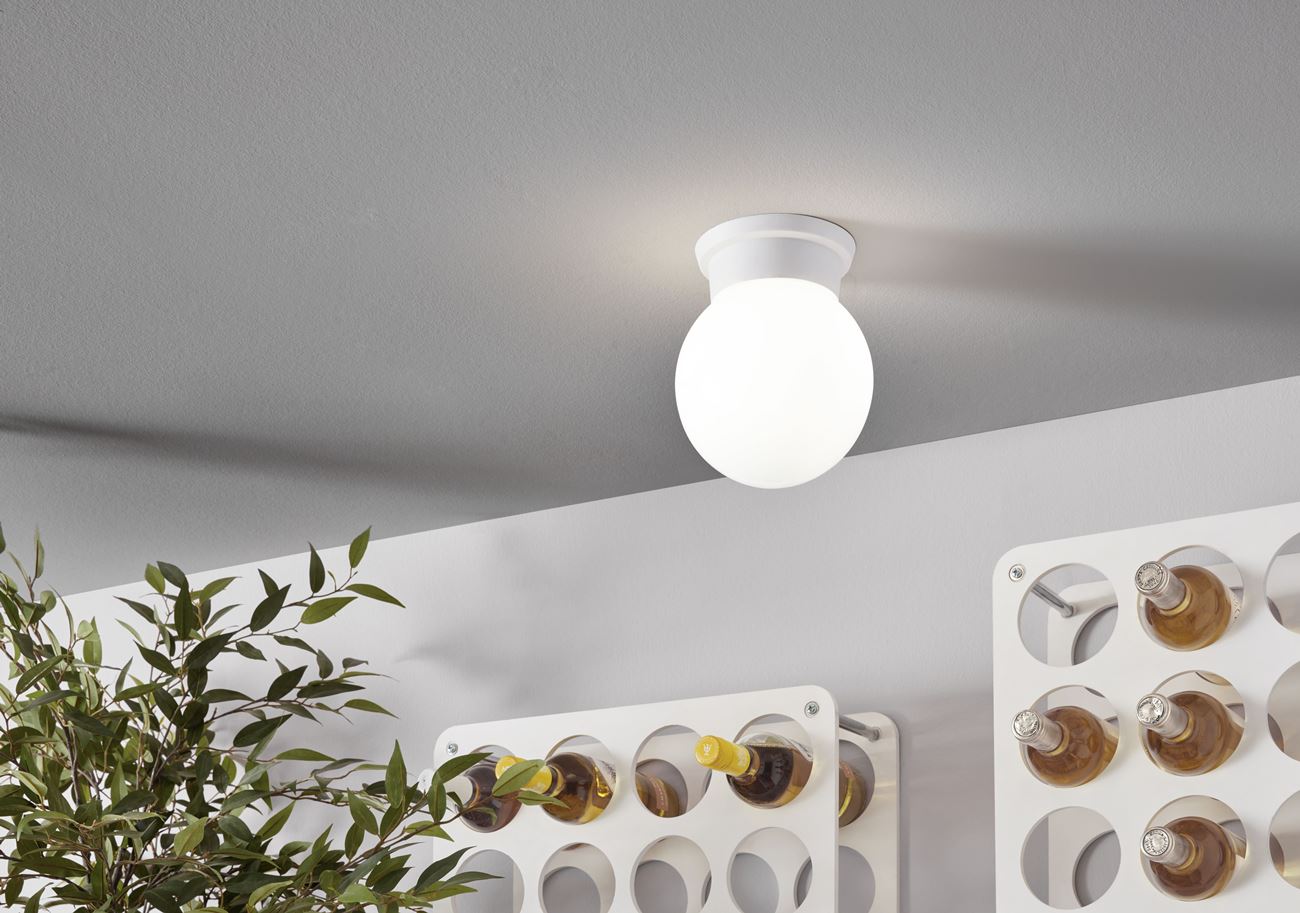 Потолочный светильник DURELO, 1х28W (E27), Ø160, H195, пластик, белый/ стекло, белый