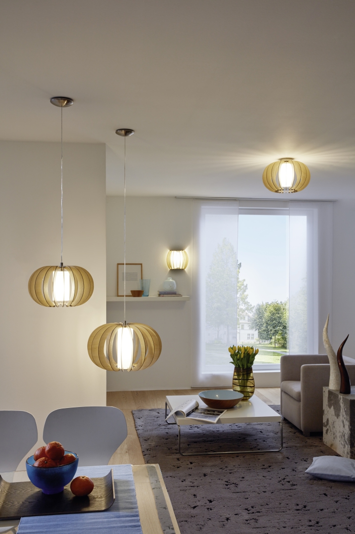 Потолочный светильник STELLATO 1, 1X60W (E27), Ø400, H275, сталь, никель матовый /дерево, стекло, клен, белый