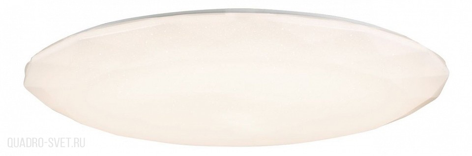 металла белого цвета. Поверхность арматуры матовая. Плафон изготовлен из полимера белого цвета, имеет круглую выпуклую форму и матовую поверхность. Направлен вниз. Осветительный прибор рассчитан на освещение пространства площадью 41 кв. м. Тип цоколя используемых ламп LED. Производитель рекомендует использовать лампы мощностью не более 90 Вт. Суммарная мощность светильника составляет 90 Вт. Лампочки входят в комплект. Защита от попадания влаги и пыли внутрь изделия не предусмотрена. Имеется пульт ДУ. Цвет свечения изменяется от теплого к холодному (3000K-6400K). Рекомендуем к применению в гостиной, кабинете, прихожей, спальне.