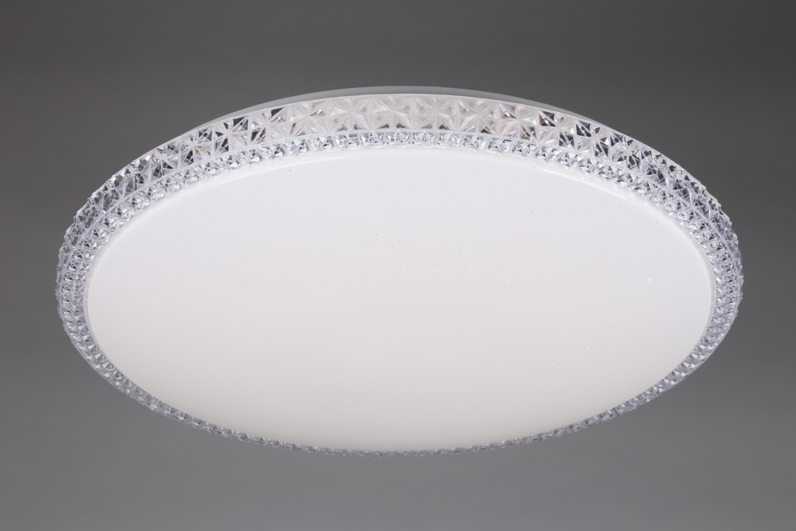 металла белого цвета. Поверхность арматуры матовая. Плафон изготовлен из полимера белого и прозрачного цветов, имеет круглую плоскую форму и матовую поверхность. Направлен вниз. Осветительный прибор рассчитан на освещение пространства площадью 27 кв. м. Тип цоколя используемых ламп LED. Производитель рекомендует использовать лампы мощностью не более 60 Вт. Суммарная мощность светильника составляет 60 Вт. Лампочки входят в комплект. Защита от попадания влаги и пыли внутрь изделия не предусмотрена. Имеется пульт ДУ. Цвет свечения изменяется от теплого к холодному (3000K-6400K). Рекомендуем к применению в гостиной, кабинете, прихожей, спальне.