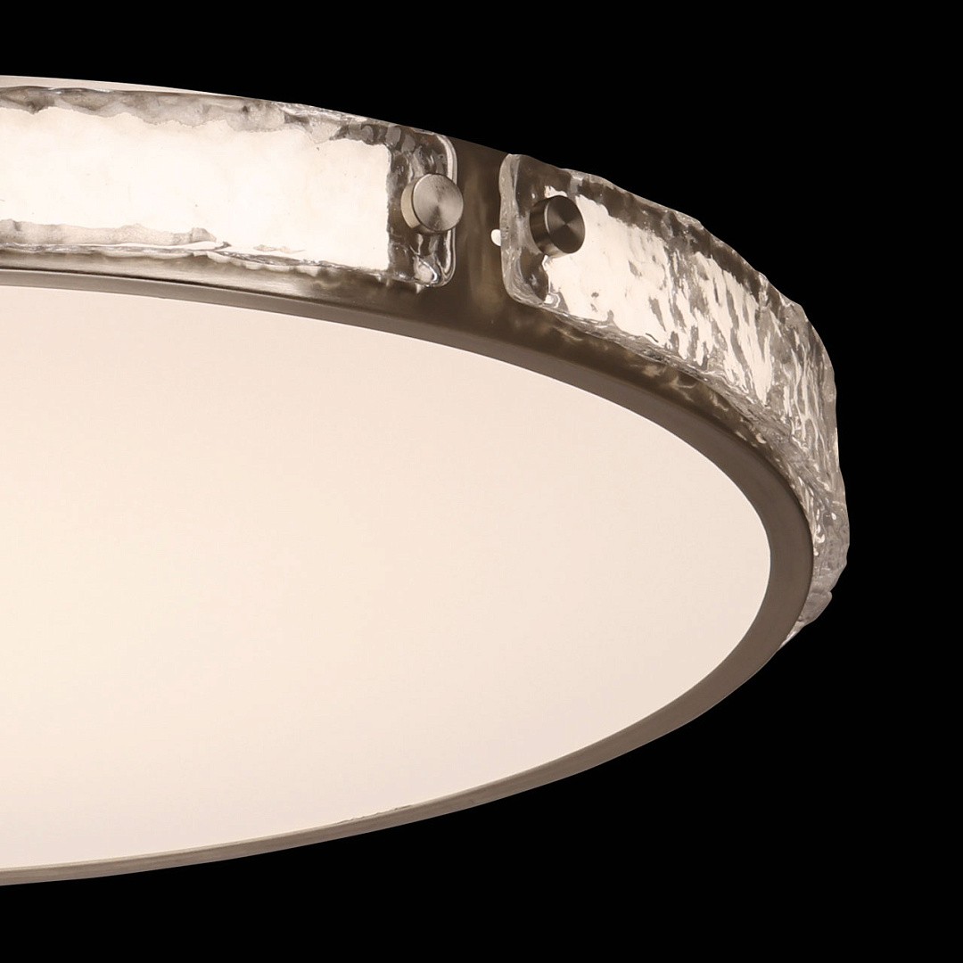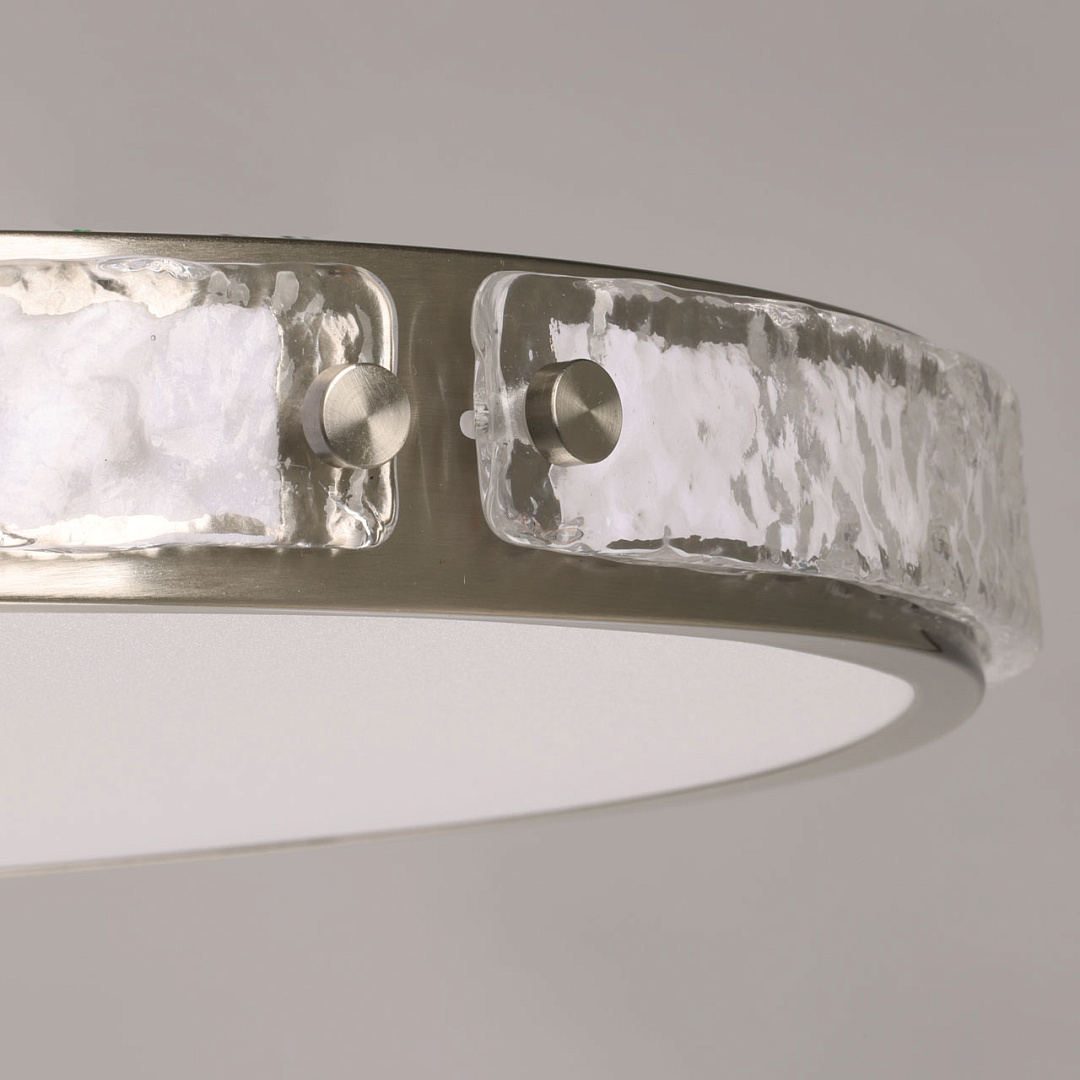 Современный минималистичный дизайн. Круглая форма и цвет никеля делают потолочную люстру современной. Обрамление металлического корпуса фактурным стеклом придает потолочной люстре элегантности. Многорежимность с изменением цветовой температуры является элементом светодизайна. Качественные светодиоды обеспечивают яркое освещение и долгий срок службы. Акриловый матовый плафон позволяет создать мягкое рассеянное освещение. Близкое расположение к потолку позволяет размещать светильник в помещениях со стандартными потолками. Светодиоды безопасны и экономичны в эксплуатации.