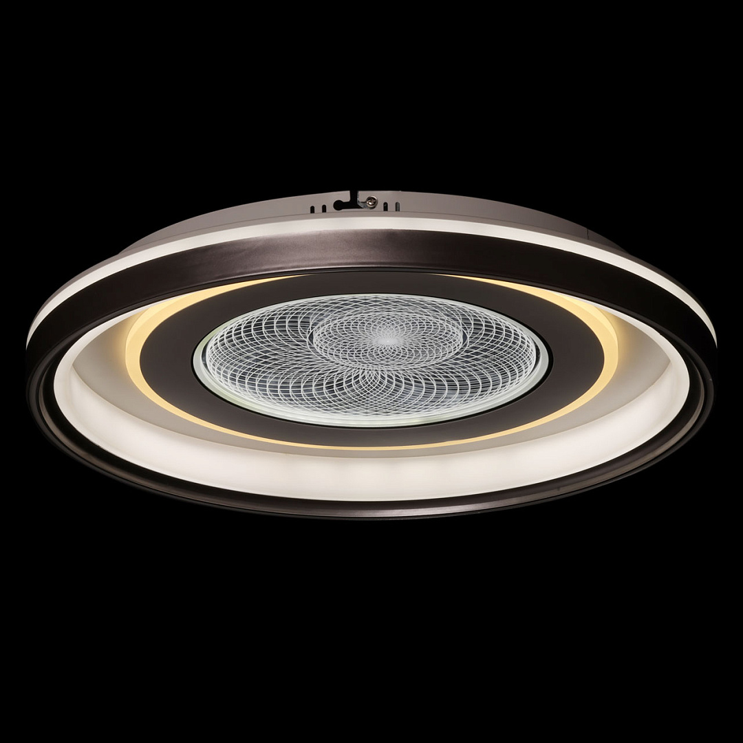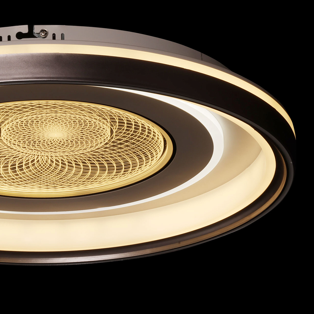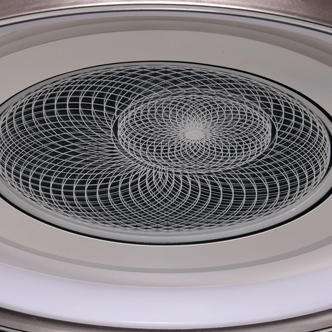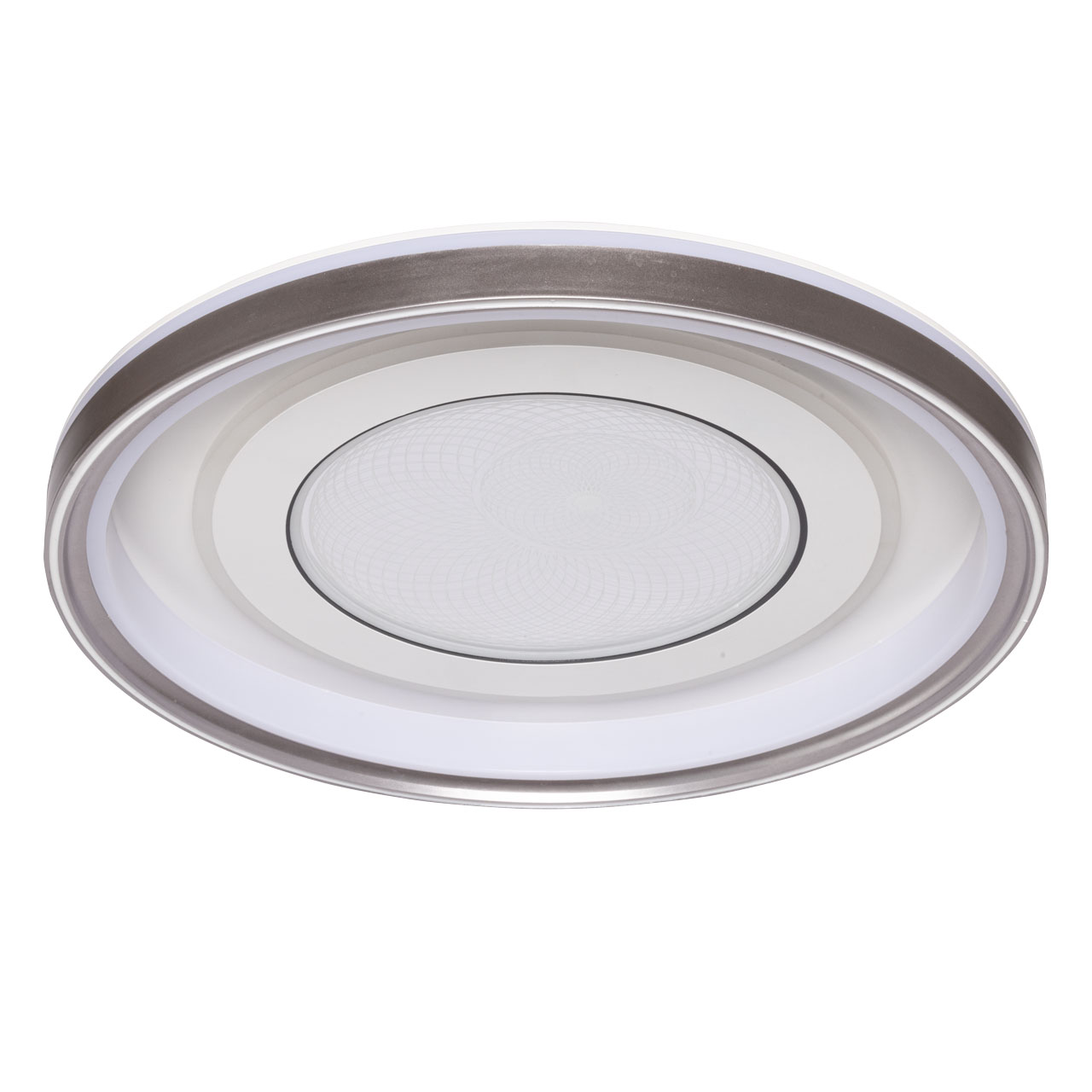 Универсальный белый цвет прекрасно подойдет к любому цветовому решению интерьера. Многорежимность с изменением цветовой температуры от 3000К до 6500К  является элементом светодизайна и позволяет подобрать комфортную температуру света. Качественные светодиоды и корпус из сплава алюминия  обеспечивают яркое освещение и долгий срок службы. Прозрачный акрил выполнен с элементами 3D-эффекта благодаря чему светильник становится арт объектом. Наличие ПДУ  обеспечивает комфортное переключение режимов освещения. Компактный светильник для стандартной высоты потолка. Светодиодные источники света экономичны и безопасны.