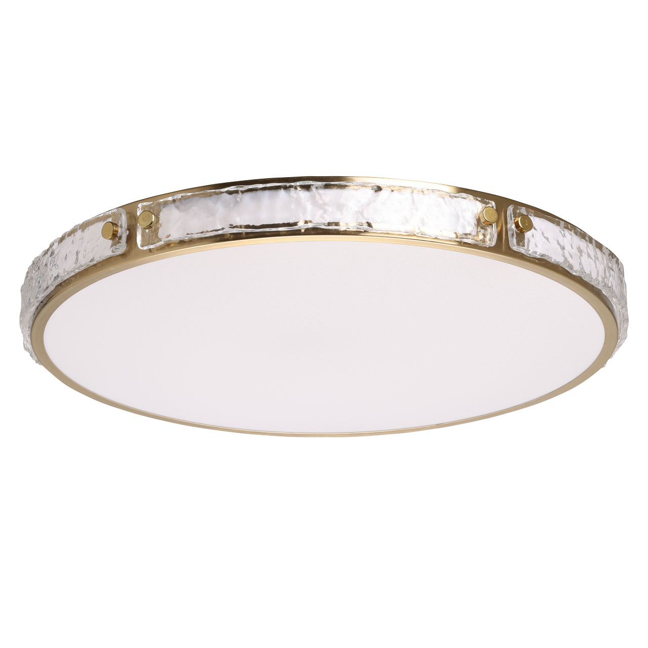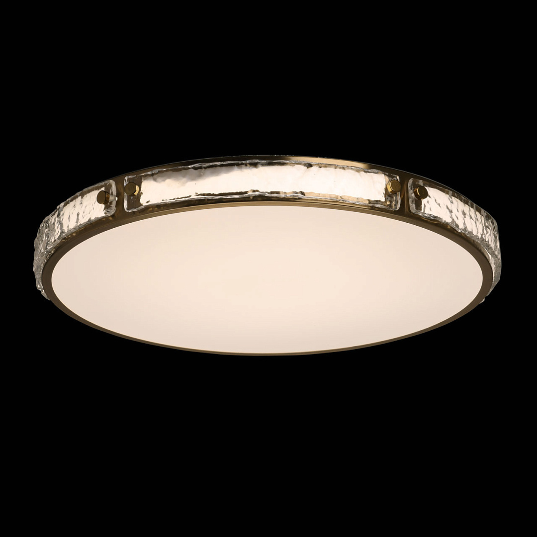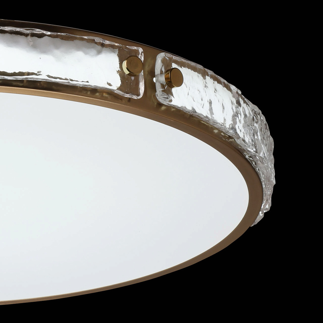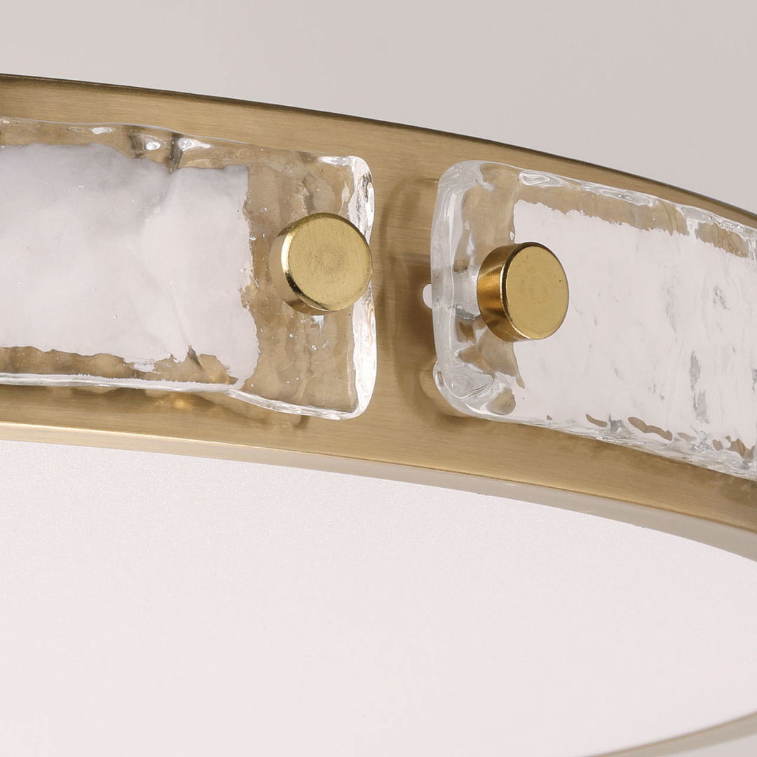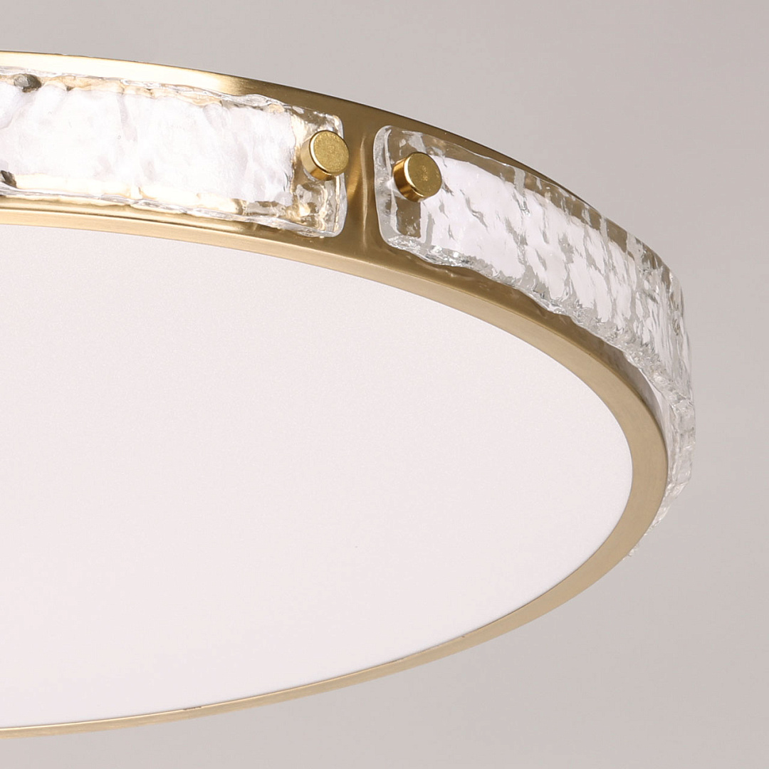 Современный минималистичный дизайн. Круглая форма и цвет латуни делают потолочную люстру универсальной, подходящей в любой интерьер. Обрамление металлического корпуса фактурным стеклом придает потолочной люстре элегантности. Многорежимность с изменением цветовой температуры является элементом светодизайна. Качественные светодиоды обеспечивают яркое освещение и долгий срок службы. Акриловый матовый плафон позволяет создать мягкое рассеянное освещение. Близкое расположение к потолку позволяет размещать светильник в помещениях со стандартными потолками. Светодиоды безопасны и экономичны в эксплуатации.