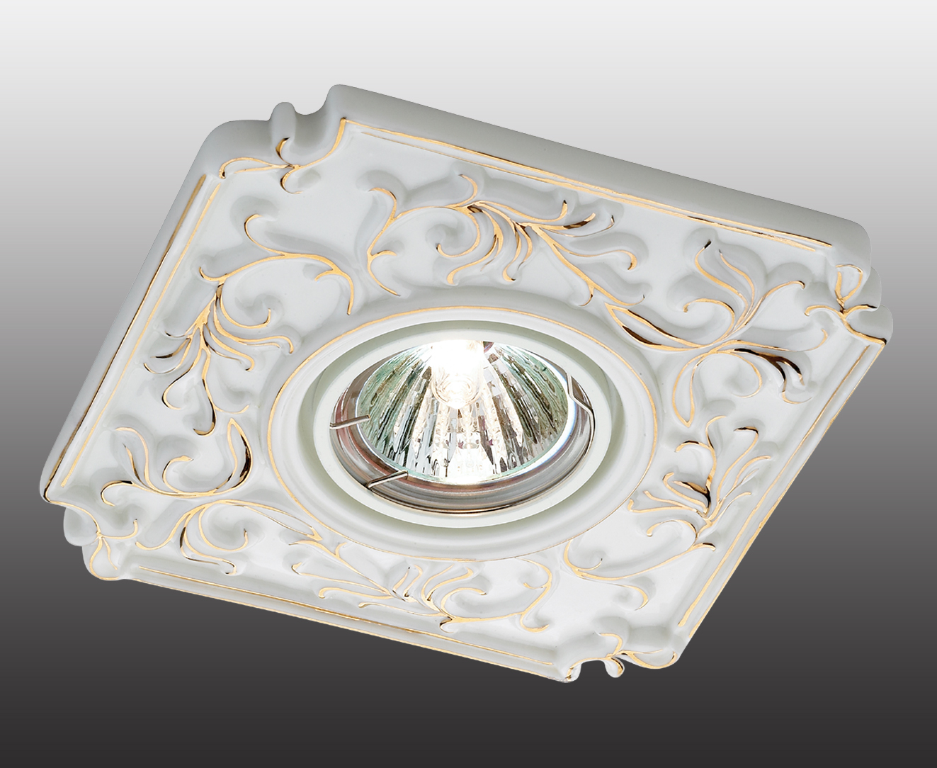Встраиваемый светильник 369866 венгенрского производителя Novotech из коллекции FARFOR выполнен в стиле классика. Арматура светильника выполнена из фарфора с золотым покрытием белого и золотого цветов. Поверхность арматуры матовая, глянцевая, рельефная. Плафон отсутствует. Осветительный прибор рассчитан на освещение пространства площадью 3 кв. м. Тип цоколя используемых ламп GX5.3. Производитель рекомендует использовать лампы мощностью не более 50 Вт. Суммарная мощность светильника составляет 50 Вт. Лампочки в комплект не входят. Защита от попадания влаги и пыли внутрь изделия не предусмотрена. Рекомендуем к применению в гостиной, кабинете, коридоре, прихожей, спальне.