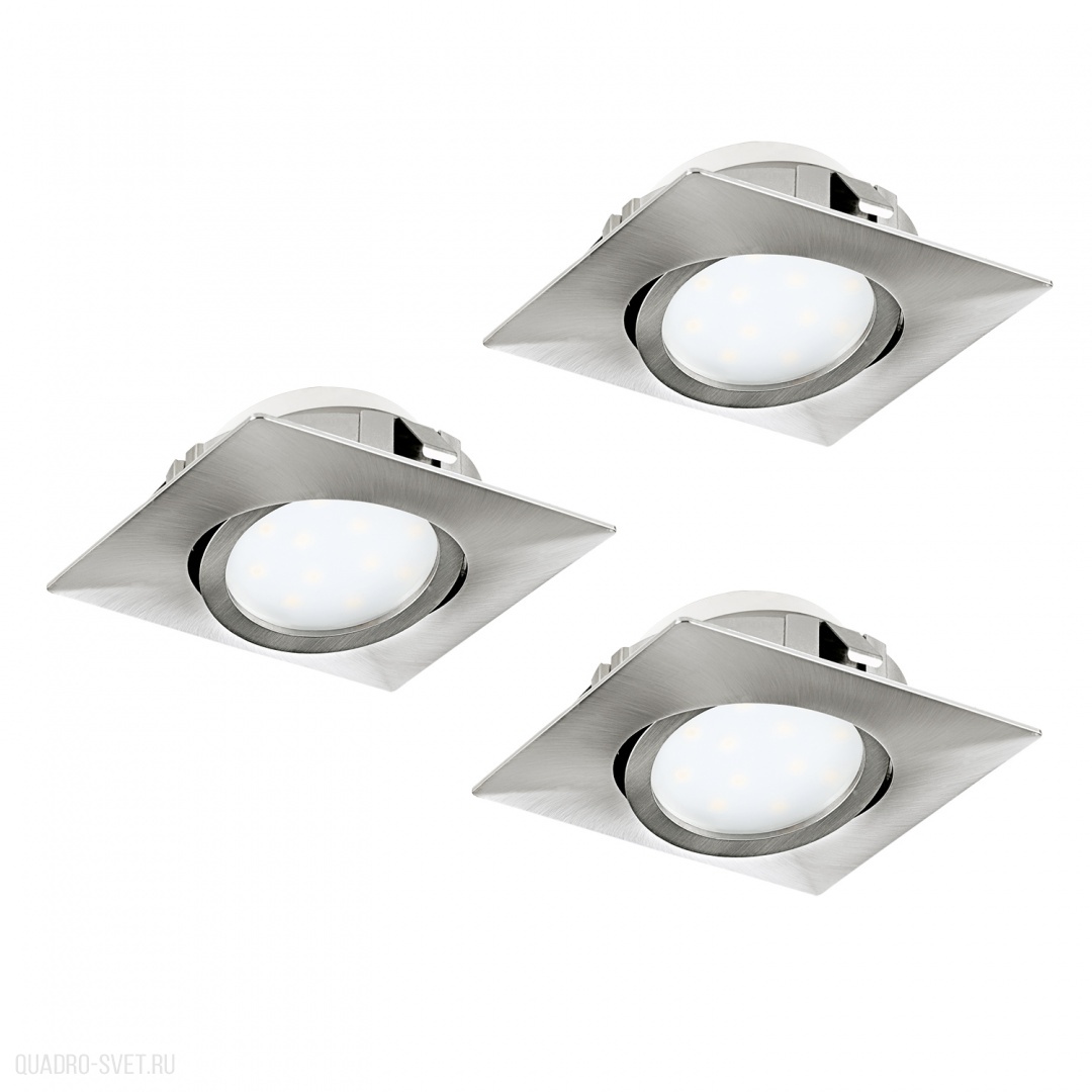 Комплект светодиод. встраив. светильников PINEDA регулир., 3х6W(LED), 84х84, пластик, никель матовый