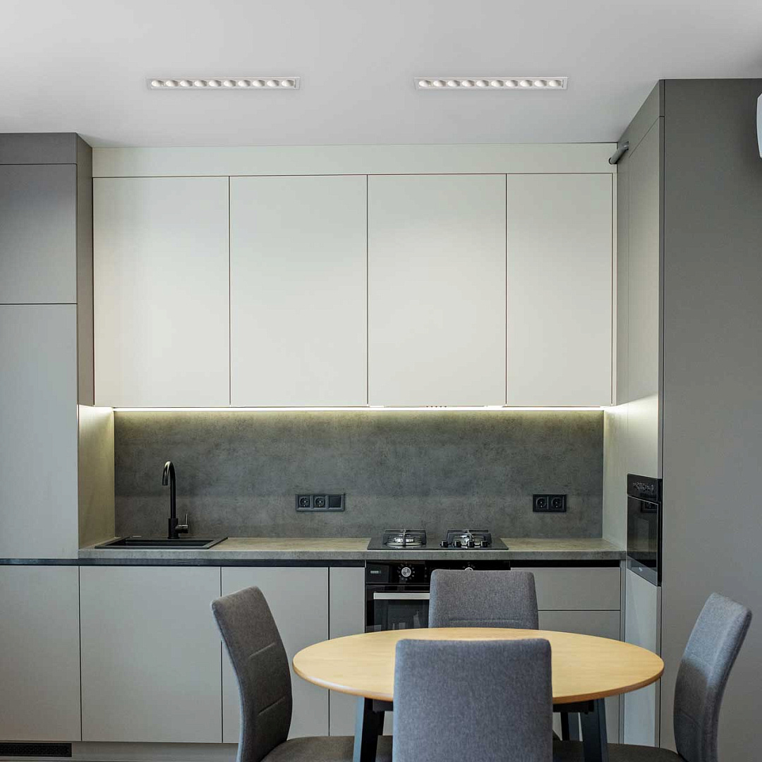 Минималистичный современный дизайн. Универсальный белый цвет гармонично вписывается в любые интерьеры. Светодиодные источники света создают яркое освещение, а уникальная конструкция светильника с утопленными светодиодами исключает слепящий эффект. Светодиодные источники света экономичны и безопасны в эксплуатации.