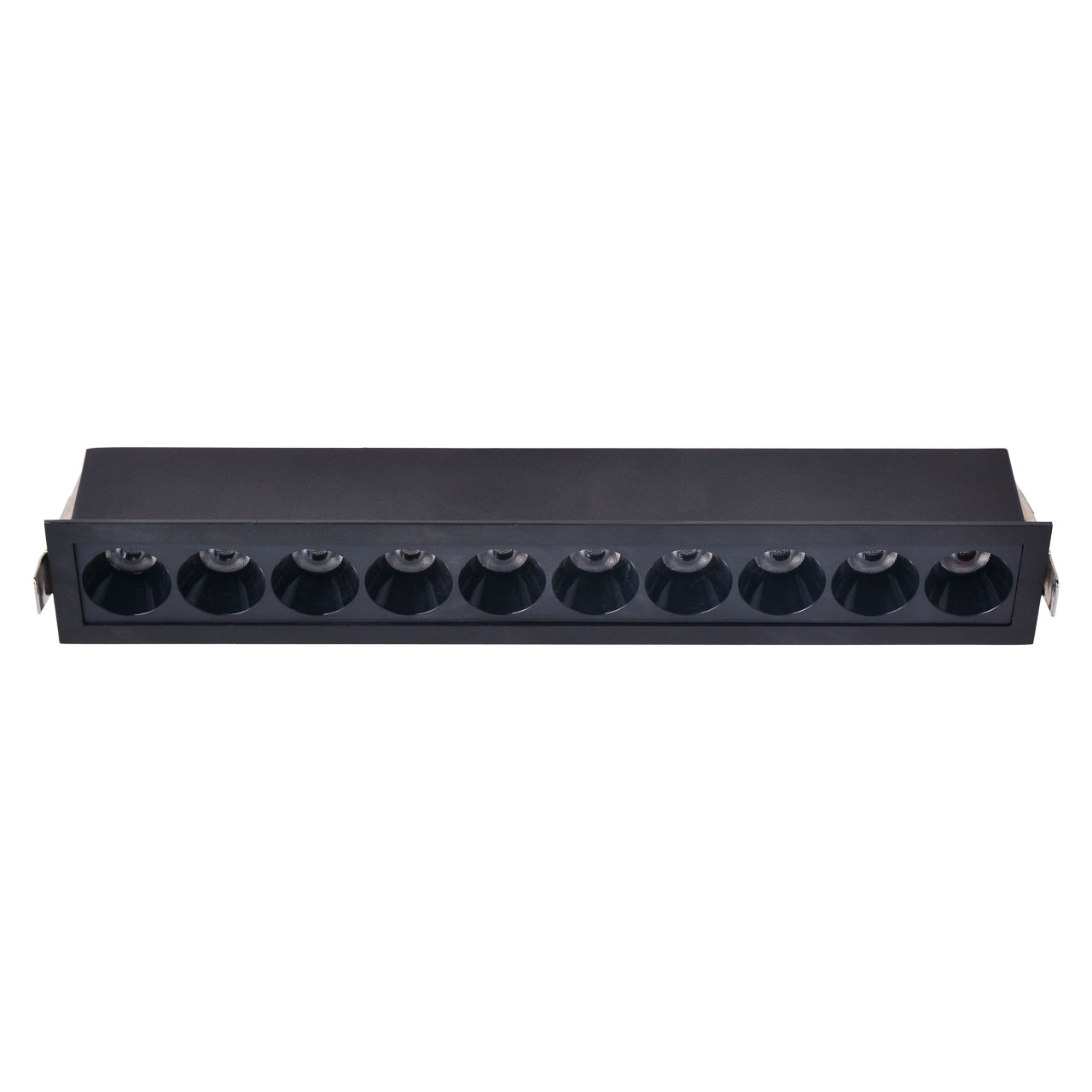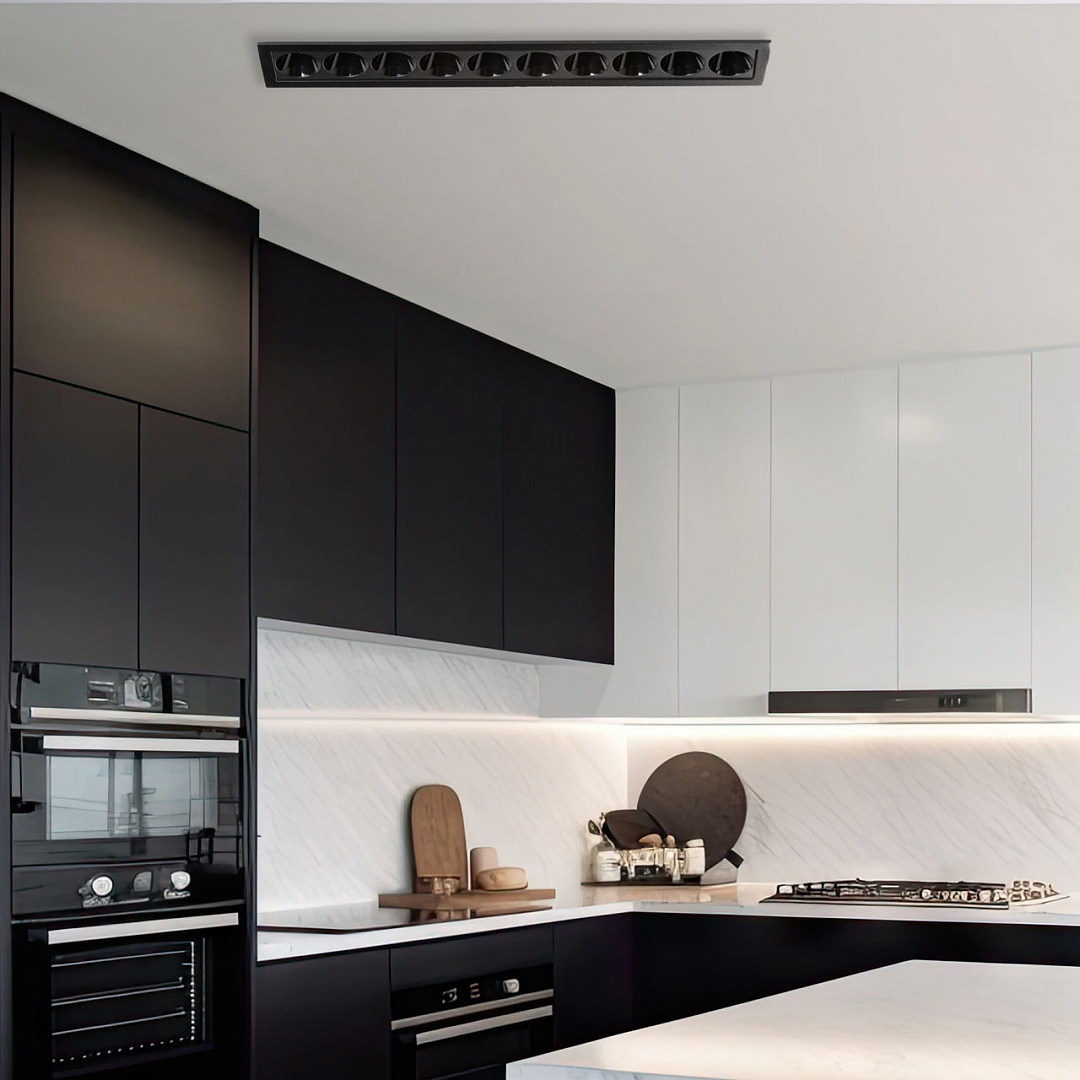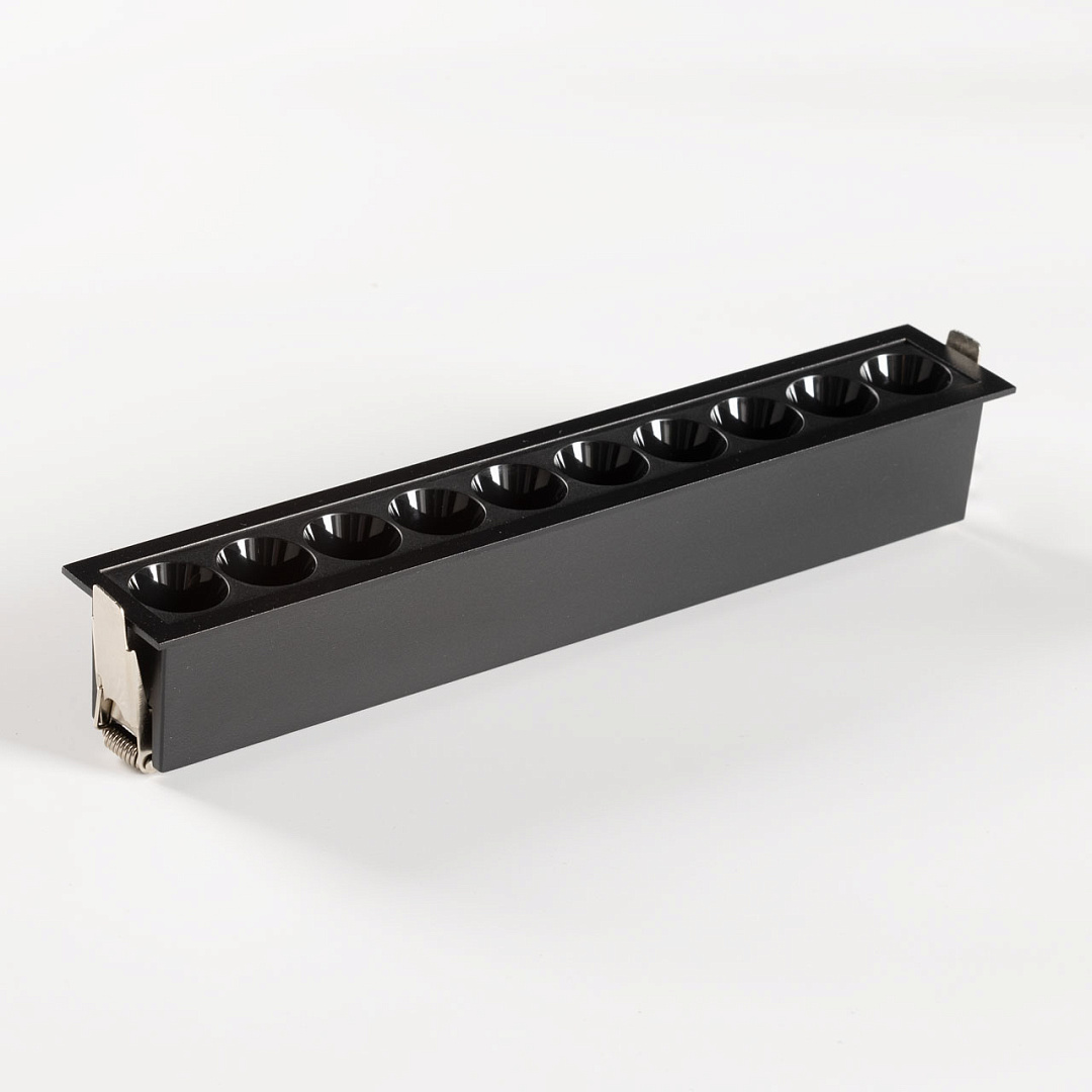 Минималистичный современный дизайн. Контрастный черный цвет делает светильник акцентом на потолке. Светодиодные источники света создают яркое освещение, а уникальная конструкция светильника с утопленными светодиодами исключает слепящий эффект. Светодиодные источники света экономичны и безопасны в эксплуатации.
