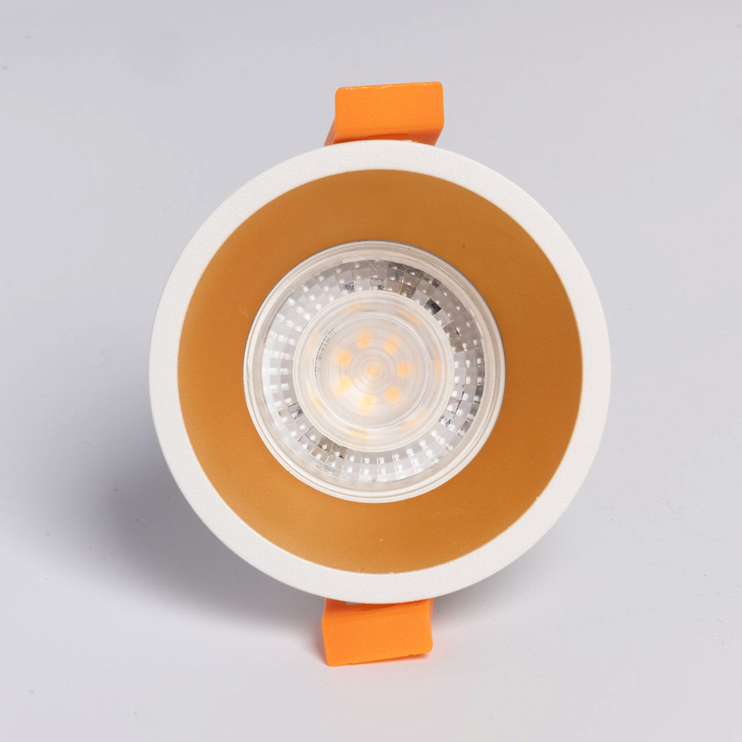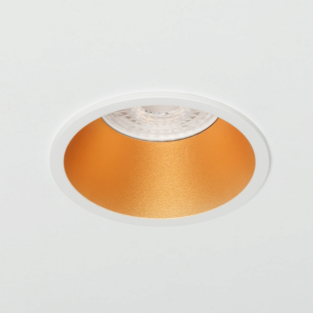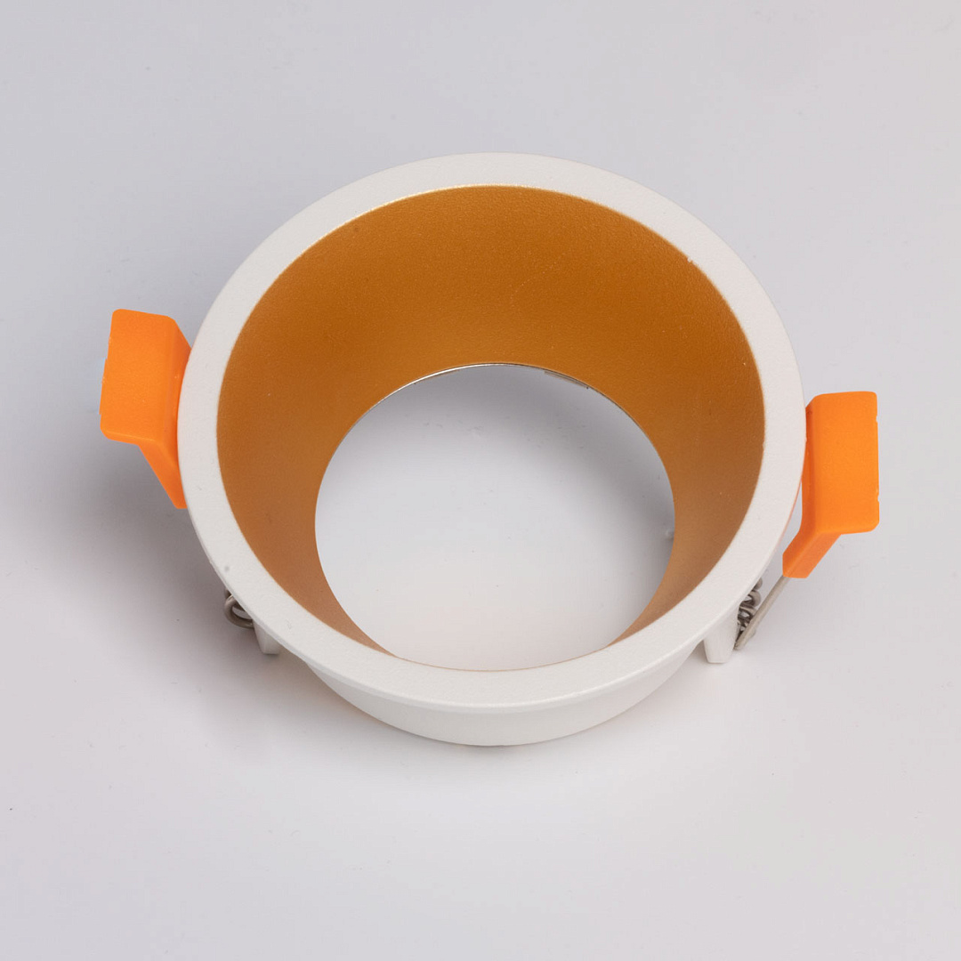 Минималистичный современный дизайн. Универсальный белый цвет гармонично вписывается в любые интерьеры. Изысканный золотой цвет эффектно отражает световой поток.  Точечное освещение пространства создает акцентное освещение. Удобные держатели надежно закрепляют светильник на потолке. Заменяемый источник света удобен в эксплуатации.