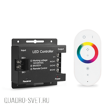Контроллер для RGB 288W 24А с сенсорным пультом управления цветом (белый) GAUSS 201013288