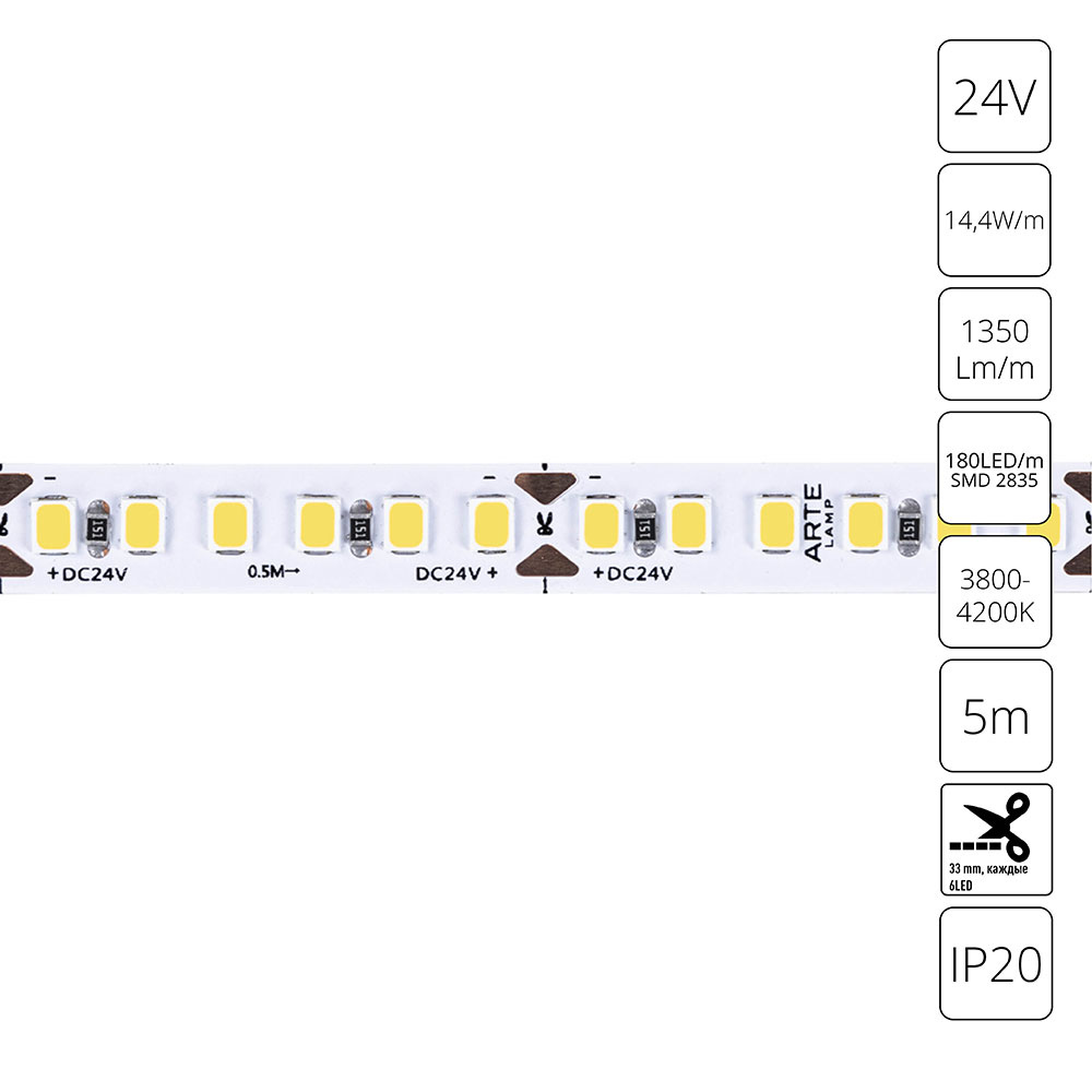 Светодиодная лента 24V 14,4W/m 4000К 5м Arte Lamp TAPE A2418008-02-4K