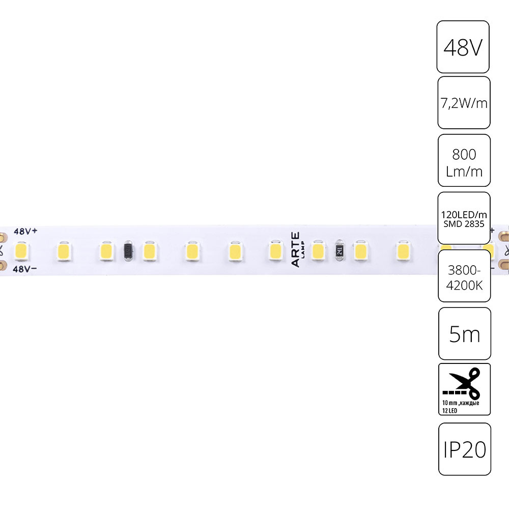 Светодиодная лента 48V 7,2W/m 4000К 5м Arte Lamp TAPE A4812010-02-4K
