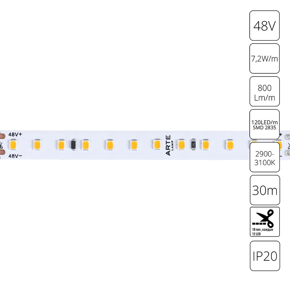 Светодиодная лента 48V 7,2W/m 3000К 30м Arte Lamp TAPE A4812010-03-3K