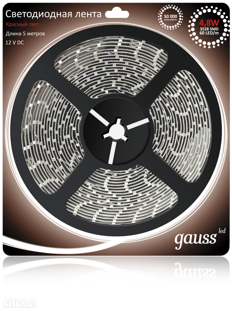 Оставить свой отзыв о товаре Светодиодная лента GAUSS 4.8 Вт/м 3528 SMD красный цвет