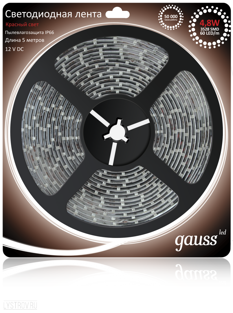 Оставить свой отзыв о товаре Светодиодная лента GAUSS 4.8 Вт/м 3528 SMD красный цвет