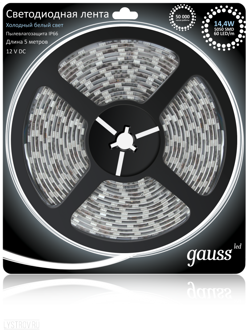 Оставить свой отзыв о товаре Светодиодная лента GAUSS 14.4 Вт/м 5050 SMD 6500K