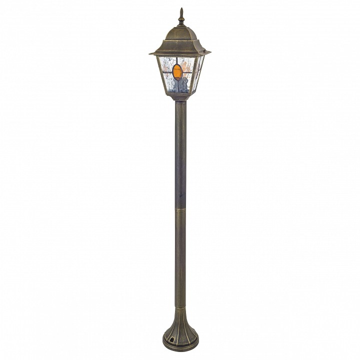 Наземный светильник 1804-1F производства Favourite (Германия) из коллекции Zagreb выполнен в стиле классика. Арматура светильника выполнена из металла черного цвета с золотой патиной. Поверхность арматуры матовая. Плафон изготовлен из стекла коньячного и прозрачного цветов, имеет пирамидальную форму и прозрачную поверхность. Направлен в стороны и вверх. Осветительный прибор рассчитан на освещение пространства площадью 5 кв. м. Тип цоколя используемых ламп E27. Производитель рекомендует использовать лампы мощностью не более 100 Вт. Суммарная мощность светильника составляет 100 Вт. Лампочки в комплект не входят. Предусмотрена защита от попадания влаги и пыли внутрь изделия. Рекомендуем к применению в на улице.