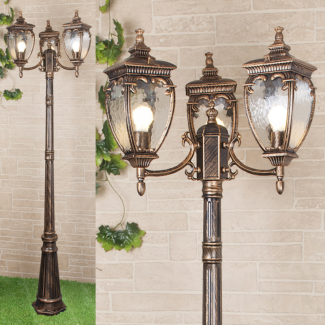 Оставить свой отзыв о товаре Уличный трехрожковый светильник на столбе Elektrostandard Andromeda F/3 (GLYF-8024F/3) черное золото