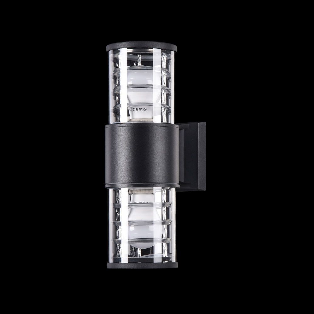 Настенный уличный светильник O576WL-02B производства Maytoni (Германия) из коллекции Bronx выполнен в современном стиле. Арматура светильника выполнена из металла черного цвета. Поверхность арматуры матовая. Плафон изготовлен из металла черного цвета, имеет цилиндрическую форму и прозрачную поверхность. Направлен вверх и вниз. Осветительный прибор рассчитан на освещение пространства площадью 6 кв. м. Тип цоколя используемых ламп E27. Производитель рекомендует использовать лампы мощностью не более 60 Вт. Суммарная мощность светильника составляет 120 Вт. Лампочки в комплект не входят. Предусмотрена защита от попадания влаги и пыли внутрь изделия. Рекомендуем к применению в на улице.