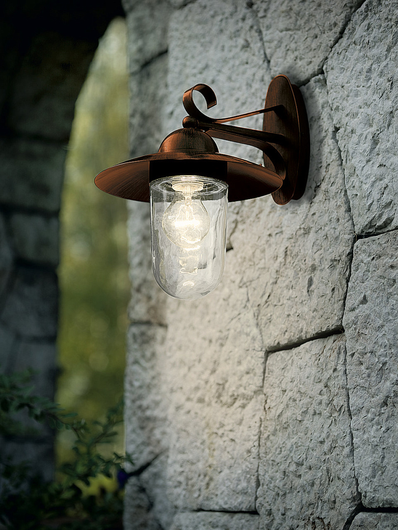 Уличный светильник настенный MILTON, 1X60W (E27), сталь, коричневый антик/стекло
