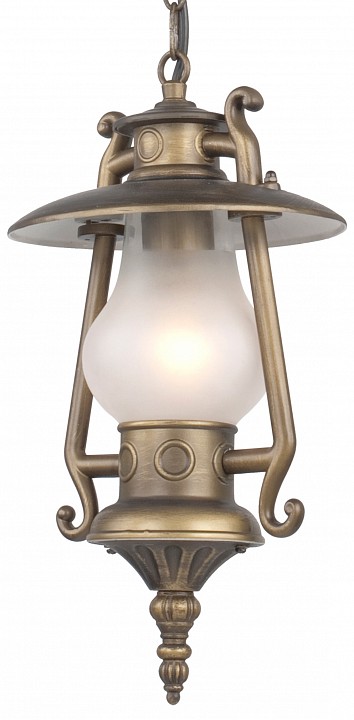 Уличный подвесной светильник 1496-1P производства Favourite (Германия) из коллекции Leyro выполнен в стиле классика. Арматура светильника выполнена из металла золотисто-коричневого цвета. Поверхность арматуры матовая. Плафон изготовлен из стекла белого цвета, имеет сложную форму и матовую поверхность. Направлен вниз. Осветительный прибор рассчитан на освещение пространства площадью 3 кв. м. Тип цоколя используемых ламп E27. Производитель рекомендует использовать лампы мощностью не более 60 Вт. Суммарная мощность светильника составляет 60 Вт. Лампочки в комплект не входят. Предусмотрена защита от попадания влаги и пыли внутрь изделия. Рекомендуем к применению в на улице.